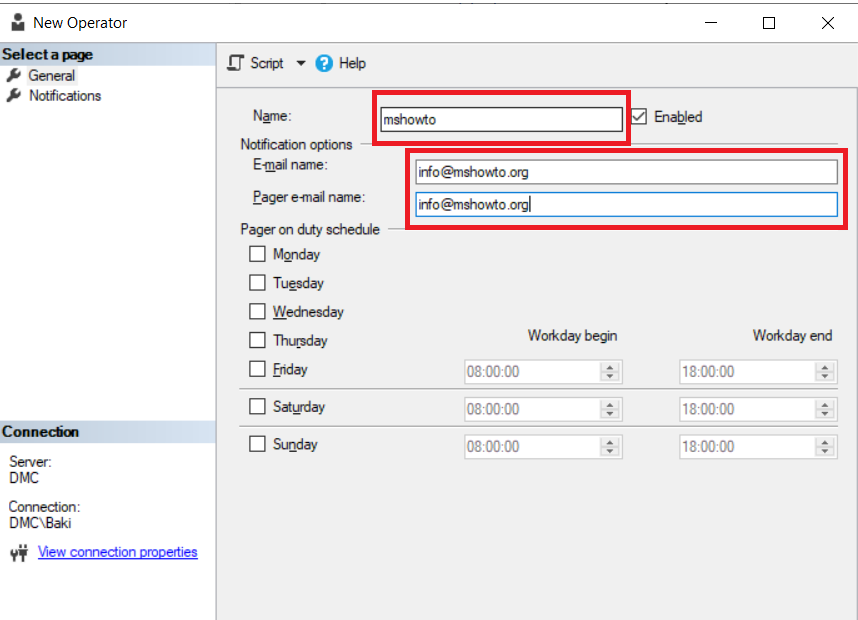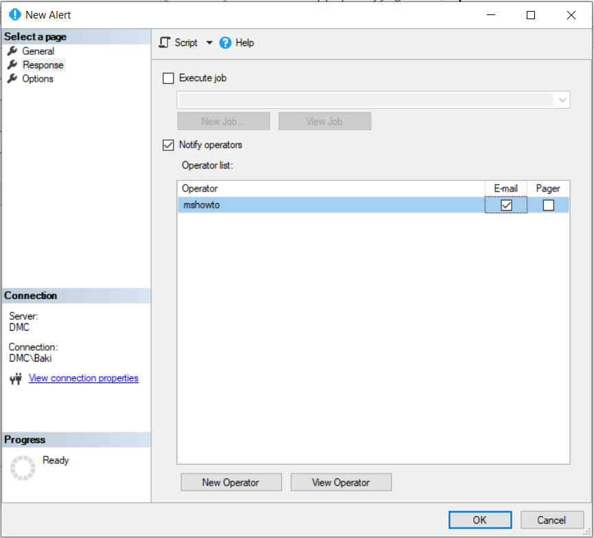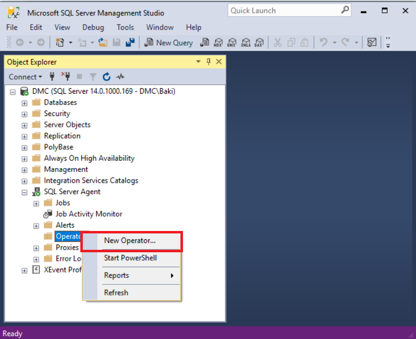 İşlemleri gerçekleştireceğimiz Server’a bağlantımızı gerçekleştirdikten sonra SQL Server Agent altındaki Operators klasörüne sağ tıklayın ve ardından bir operatör oluşturun.