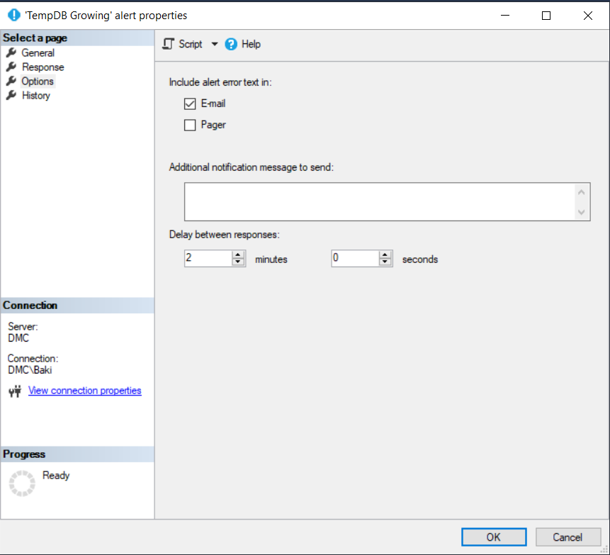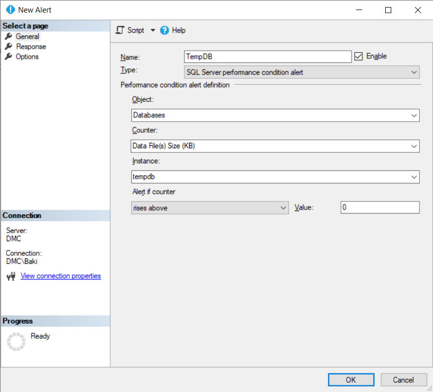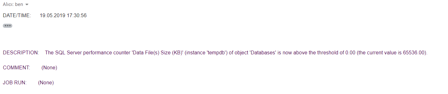 Çok fazla işlem türleri için uyarı gönderebiliriz. Bu yazı için ben Tempdb üzerindeki büyümeyi takip edebilmek adına bir uyarı tanımladım.