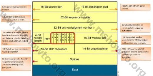 Tcp’nin yukarıda bahsettiğimiz özelliklerini daha ayrıntılı olarak inceleyelim. Öncelikle TCP katmanında veriye eklenen header (Başlık) ve özelliklerini inceleyelim.