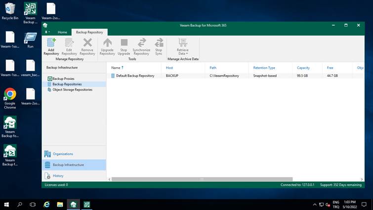 Merhabalar bugünkü yazımda sizlere Veeam Backup for Microsoft 365 uygulamasında Backup Repository oluşturma ve Organization ekleme işlemlerini göstereceğim.