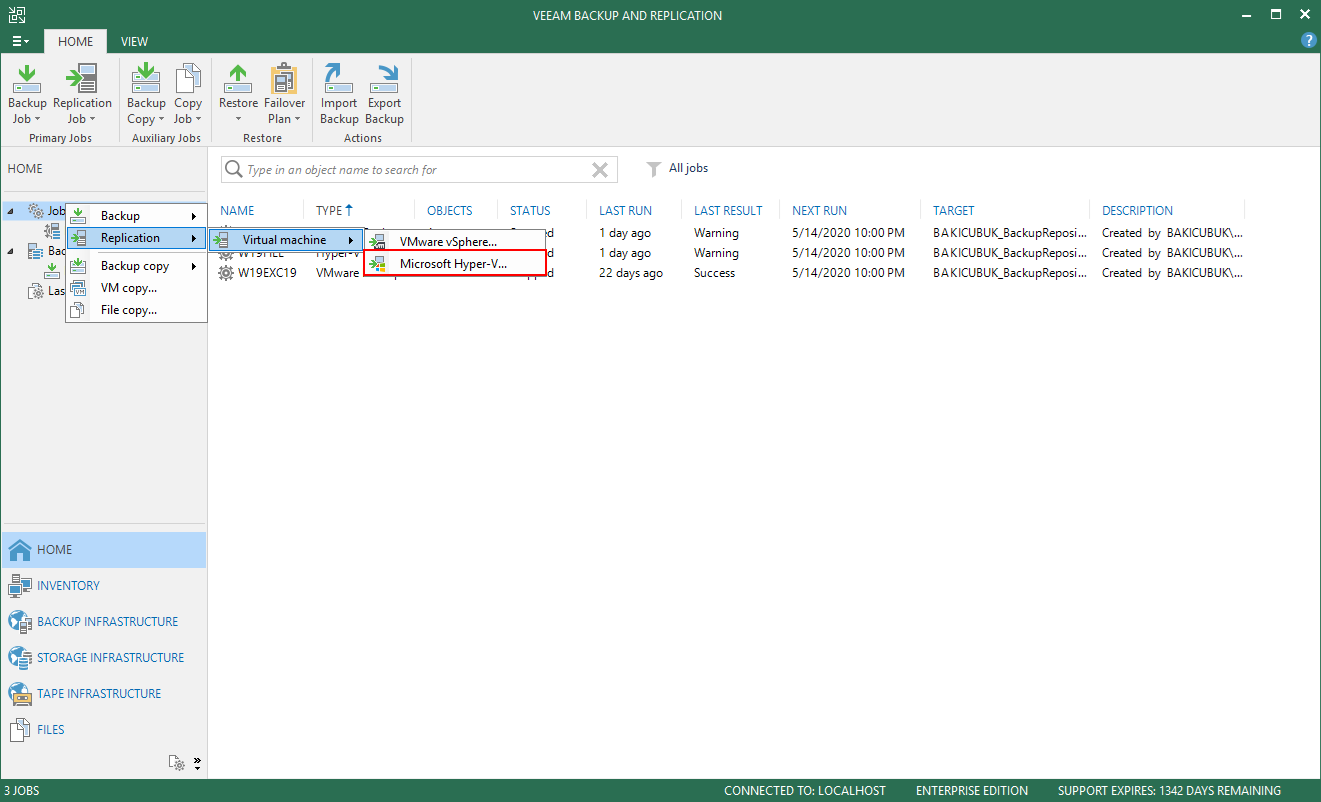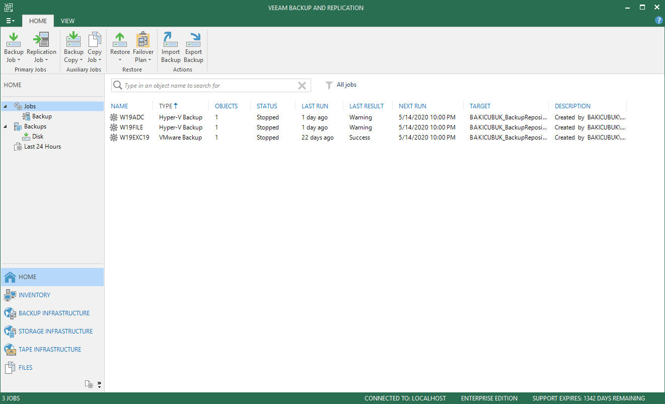Veeam Backup & Replication 10 konsulu geliyor karışmıza Veeam Backup & Replication 10 konsolunda bulunan BACKUP & REPLICATION bölümü altında bulunan Jobs sekmesinden yapılandırıyoruz.