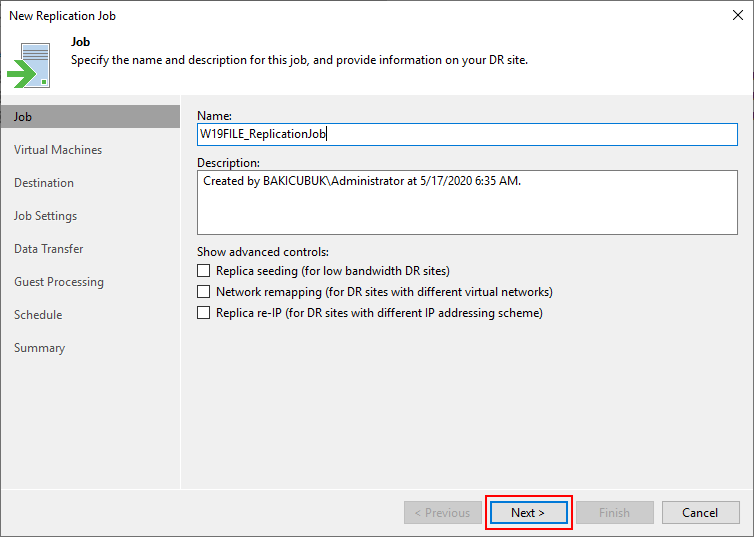 Summary ekranın da Run the job when I click Finish seçeneğini işaretlersek Replication Job yapılandırma işlemi tamamlandıktan sonra otomatik olarak başlayacaktır.