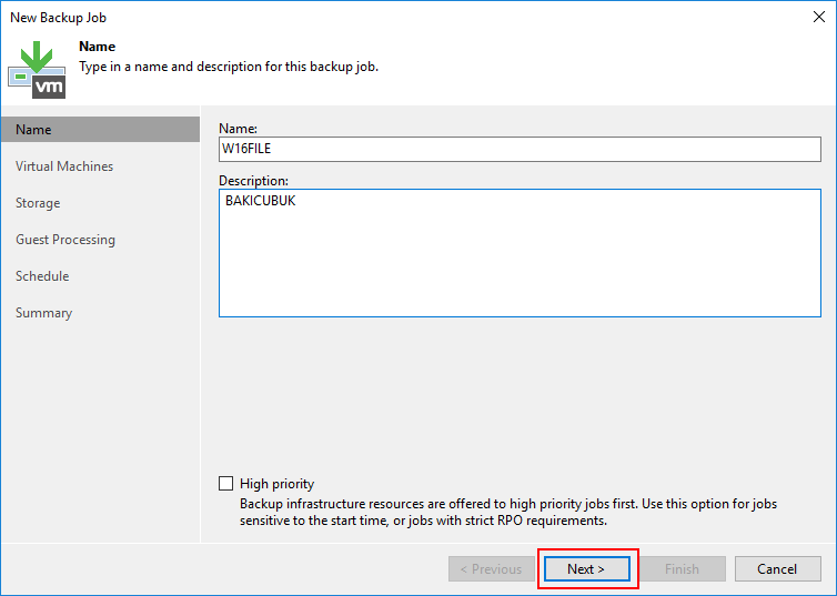 - Name : Backup alınacak W16FILE isimli Virtual Machine (Sanal Makine ) ismi