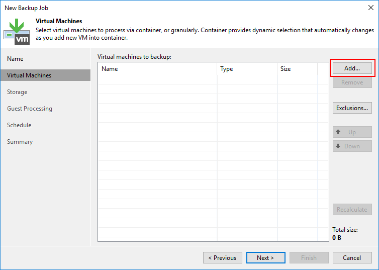 Virtual Machines ekranın da Backup alacağınız Virtual Machine ( Sanal Makina ) eklemek için Add diyoruz.