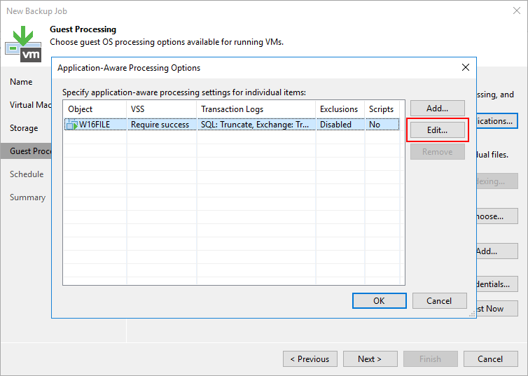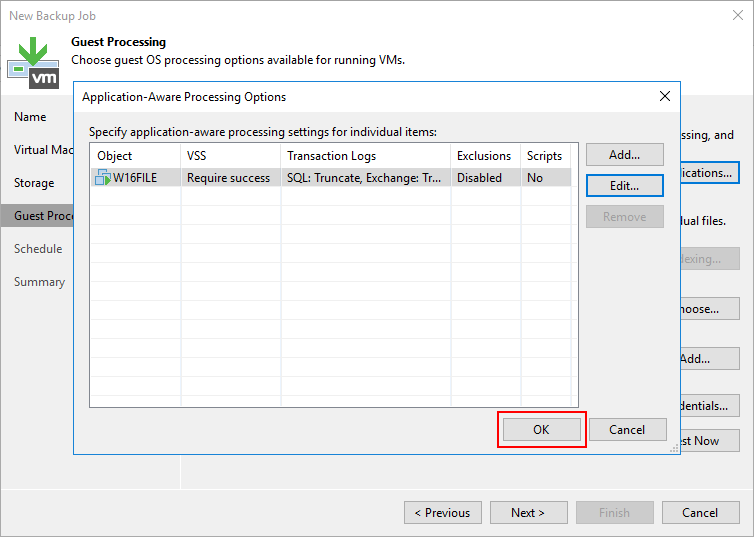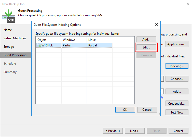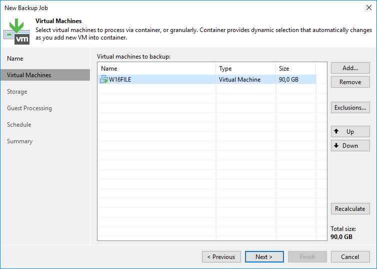 - Source items : Backup alınacak W16FILE isimli Virtual Machine (Sanal Makine ) Vmware üzerinde hangi sunucu üzerinden Backup alınacağını görüyoruz.