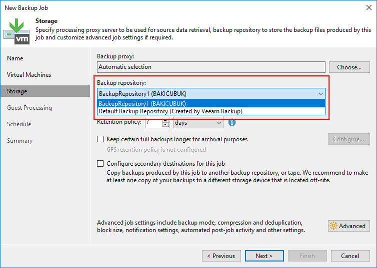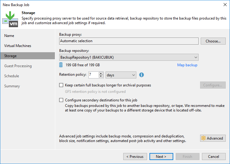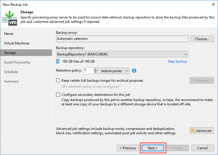 Storage ekranın da Backup proxy bölümünde eğer ortamınızda başka bir sunucu üzerinde Backup Proxy sunucusu olarak yapılandırmadıysanız Automatic selection olarak gelecektir.