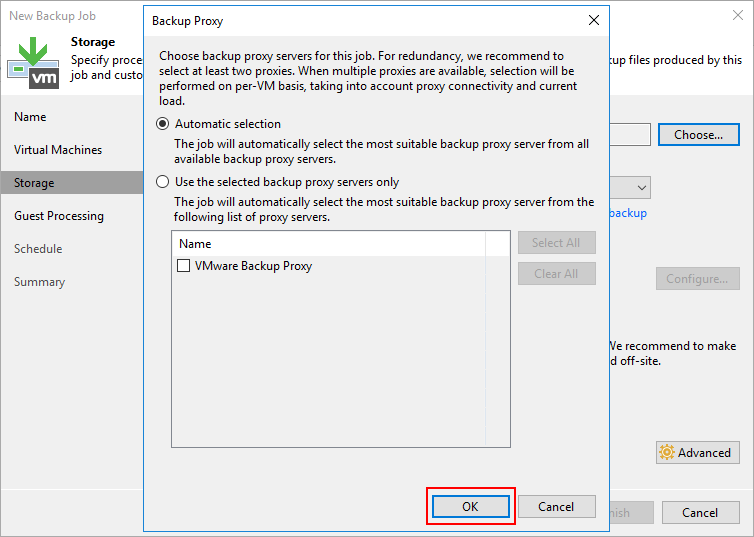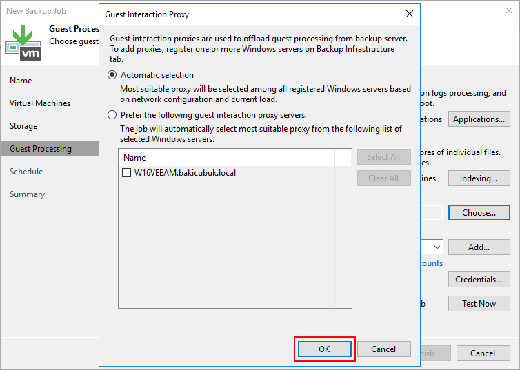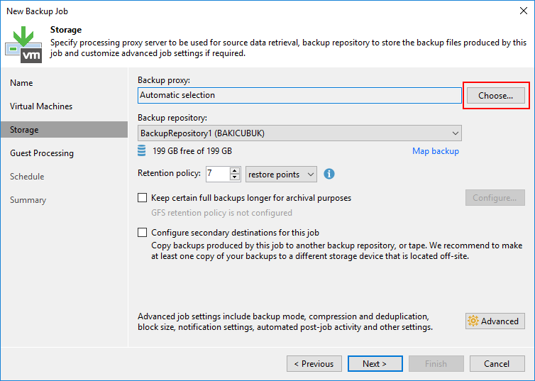 Storage ekranın da Backup proxy bölümünde ortamınızda başka bir sunucu üzerinde Backup Proxy sunucusu yapılandırmak için Choose diyoruz.