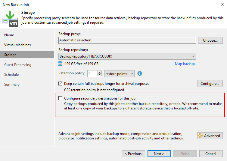 Configure secondary destinations for this job seçeneği ile alınan Backup ( Yedek ) bir kopyasını Tape Backup üzerine ya da WAN Network yapısı üzerinden Remote Backup ( Uzak Yedekleme ) ya da Replicas ( Replikasyon ) yapılandırabilirsiniz.
