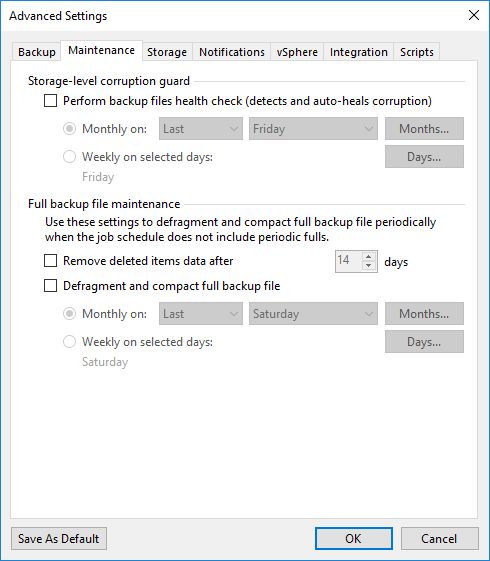 Storage-level corruption quard seçeneği ile Backup ( Yedek ) alınan Storage ya da NAS cihazı üzerinde bulunan Backup dosyalarında herhangi bir bozulma olup olmadığını Mountly ( Aylık ) ve ya Weekly ( Haftalık ) olarak kontrol edebilirsiniz.