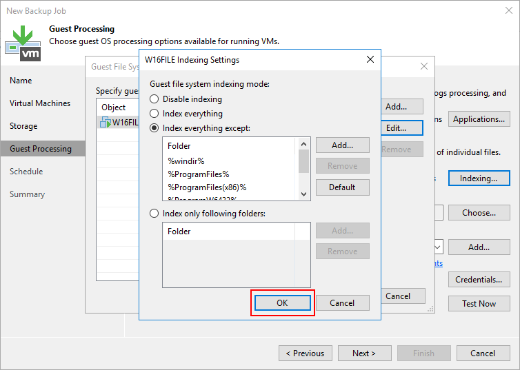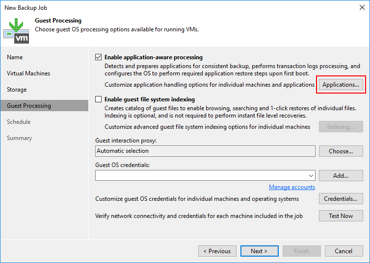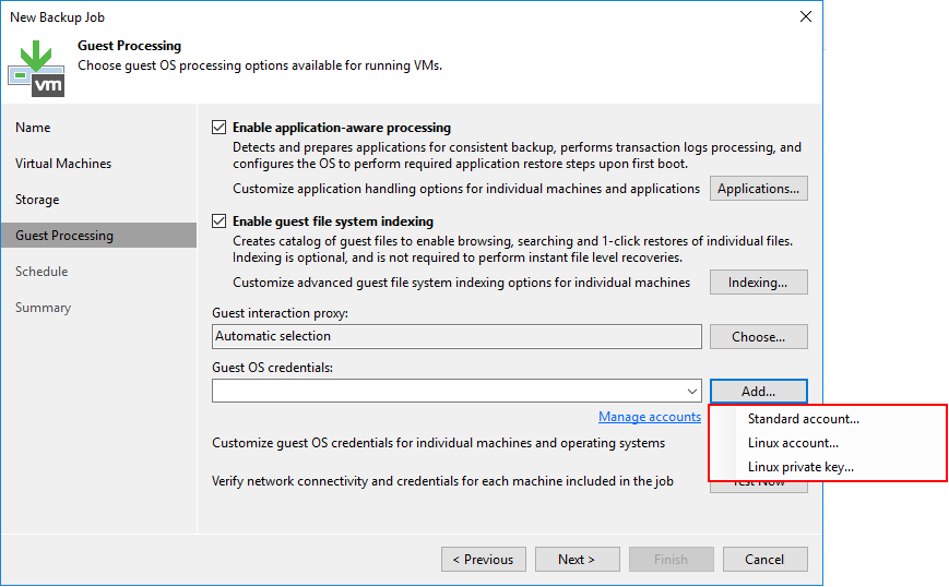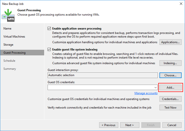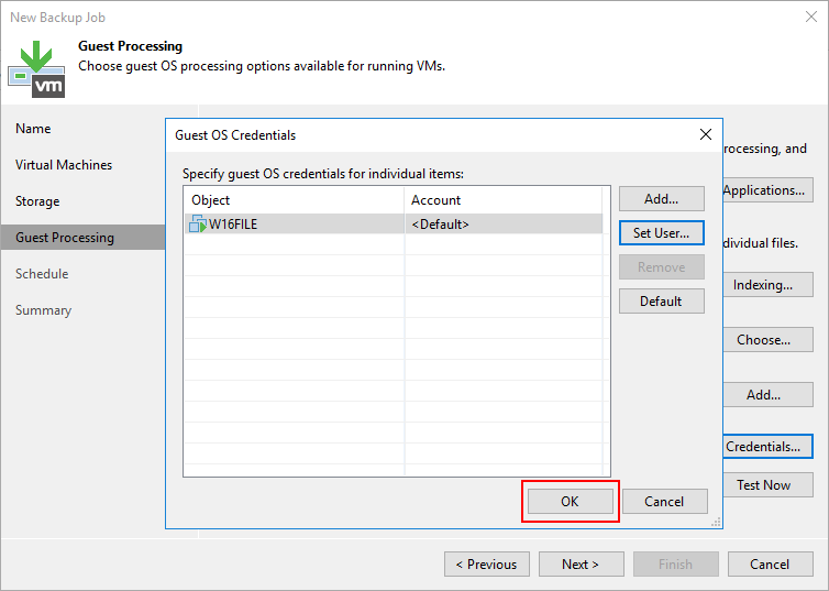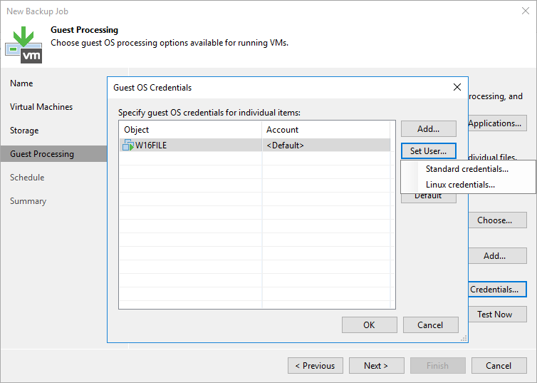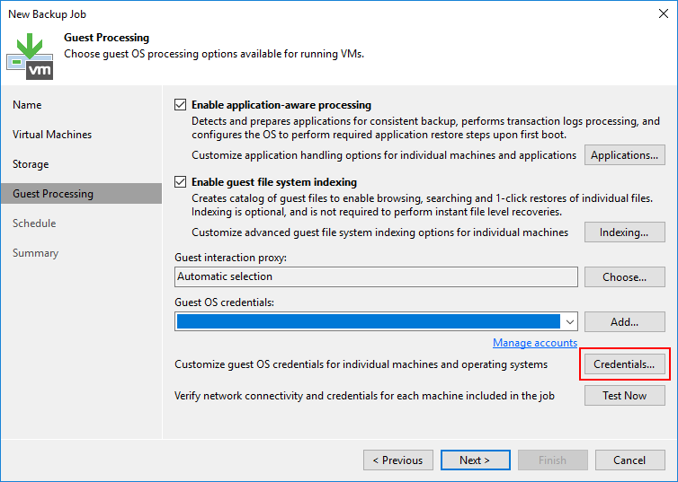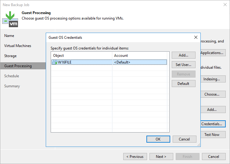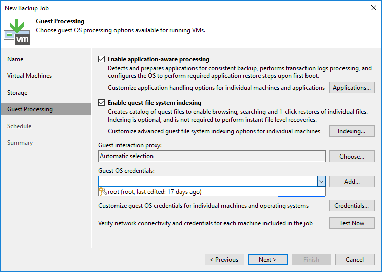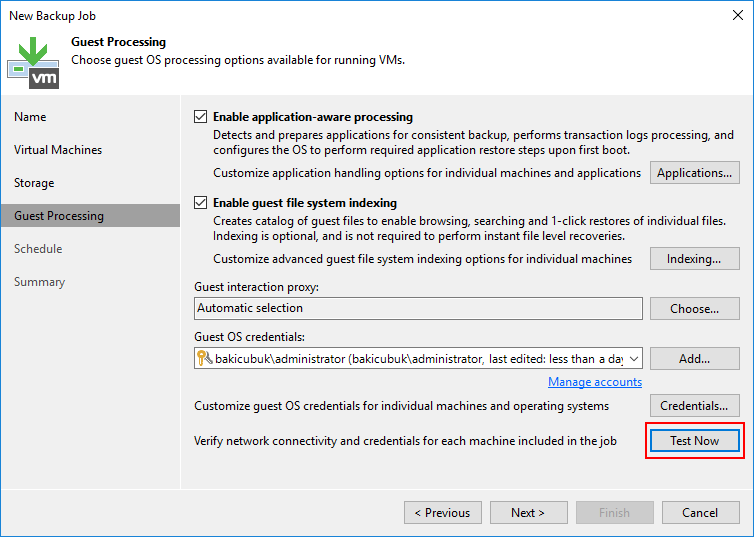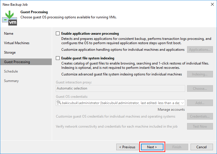 Guest OS credentials bölümün de Virtual Machine ( Sanal Makine ) ulaşmasi için Veeam Backup & Replication 11 kurulumun da daha önce yapılandırdığımız yetkili Credentials ( Kimlik Bilgisi ) listeden seçebilirsiniz.