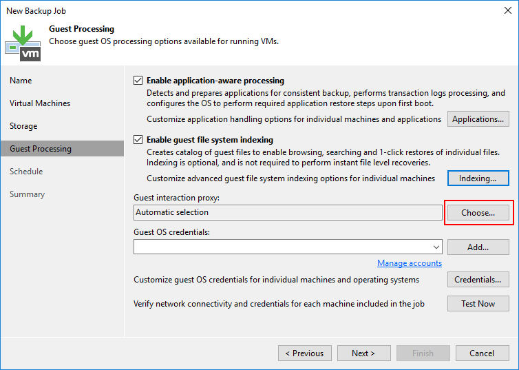 Guest Processing ekranın da bulunan Enable application-aware image processing ve Enable guest file system indexing seçeneklerini yapılandırmanız durumunda Virtual Machine ( Sanal Makine ) içinde bulunan uygulamalara ulaşmak ve uygulamaları kontrol etmek için Guest interaction proxy bölümün de yapılandırmamız gerekmektedir.