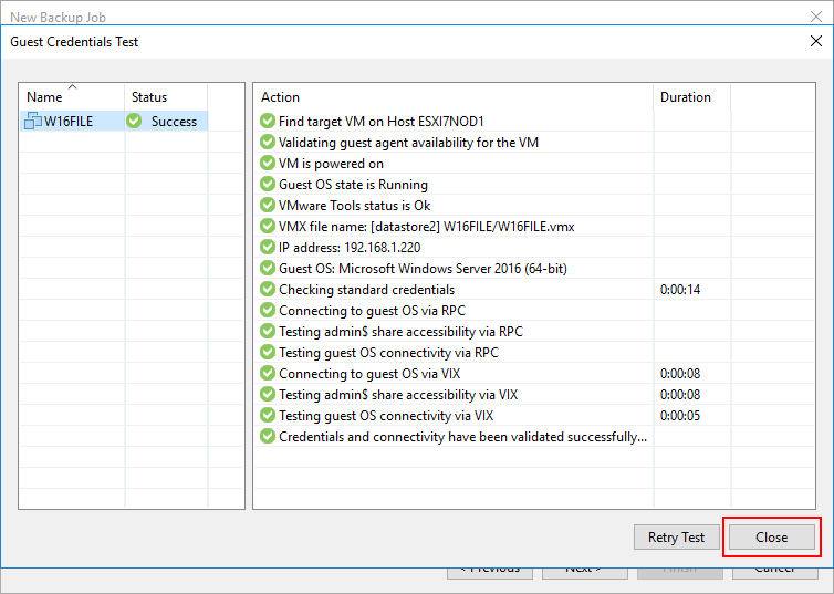 Guest Credentials Test ekranın da test başarılı bir şekilde tamamlandıktan sonra Close diyerek test ekranını kapatıyoruz.