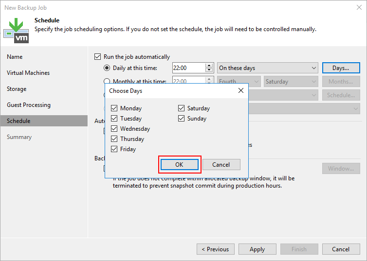 Choose Days ekranın da Full Backup ( Tam Yedek ) alınacak günleri yapılandırabilirsiniz.