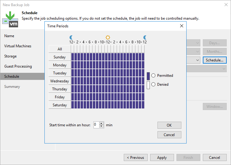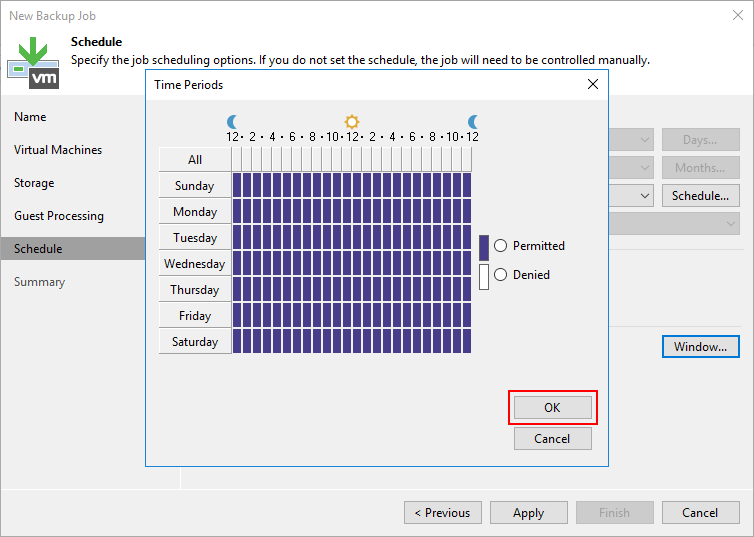 Time Periods ekranın da Backup Job belirlenen saatlerde tamamlanmamış ise iptal edileceği zamanı yapılandırabilirsiniz.