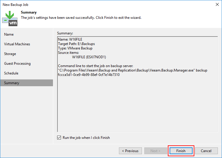 - Run the job when I click Finish seçeneğini işaretlerseniz Backup Job yapılandırma işlemi tamamlandıktan sonra otomatik olarak başlayacaktır.
