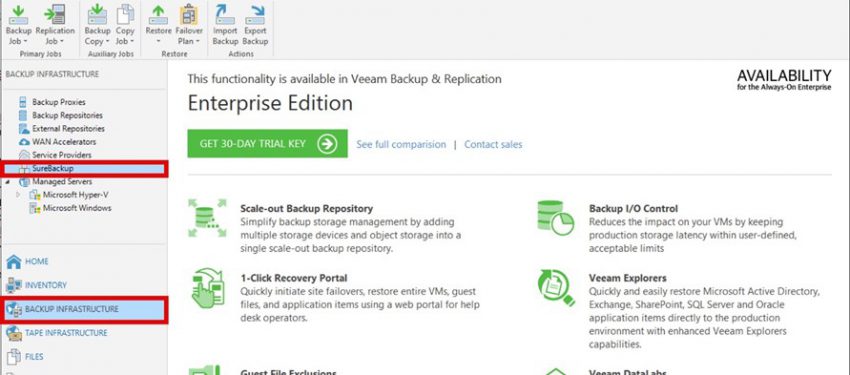 Veeam Backup & Replication v9.5 bağlantı sağlıyoruz aşılan ekranımızda Backup Infrastructure-SureBackup seçiyorum ve işleme başlıyorum.