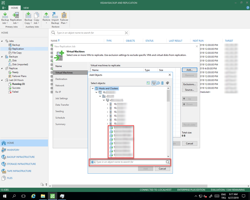 Bu sekmede replikasyonunu gerçekleştireceğimiz makine seçilerek devam edilir, kolaylık olması adına Search üzerinden VM name ile arama gerçekleştirilebilir.