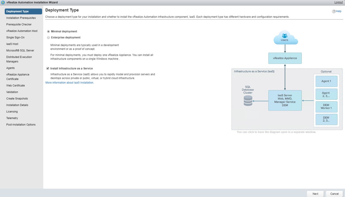 Minimal deployment’ı seçtikten sonra ve IaaS’yi yüklüyoruz.