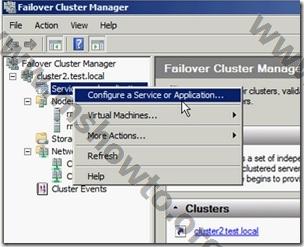 RMS Node 1 üzerinde Failover Cluster Manager ‘ı açarak Services and Applications üzeri sağ klik yaptıktan sonra Configure a Service or Application seçeneğini seçelim.