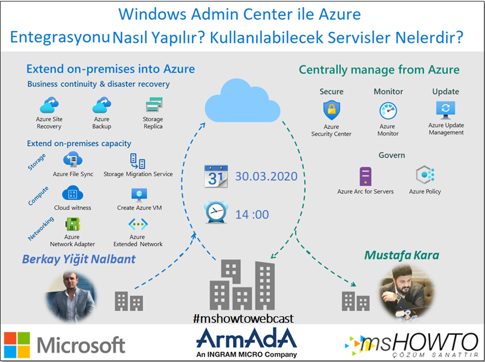 MSHOWTO Topluluğu olarak hazırladığımız hafta içi webcast’lerinden bir diğeri Hibrit Bulut Mimarisinin en iyi kullanım senaryolarından bir tanesi olan Windows Server 2019’daki Windows Admin Center ile Azure Entegrasyonu üzerine planladık. İki seri halinde hazırladığımız webcast’in ilkinde Mshowto Yöneticilerinden Sevgili Berkay Yiğit Nalbant ile sizlere Windows Admin Center ile Azure Entegrasyonu Nasıl Yapılır? Kullanabilecek Servislerin neler olduğunu anlatacağız.