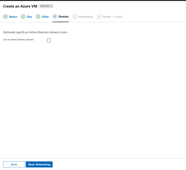 Eğer Azure üzerinde kuracağımız sanal makinanın domaine almak istiyorsanız bu ekranda ilgili tiki işaretlereyek sağlayabilirsiniz.Ben domain ortamına dahil etmeyeceğim için Next ile devam ediyorum.