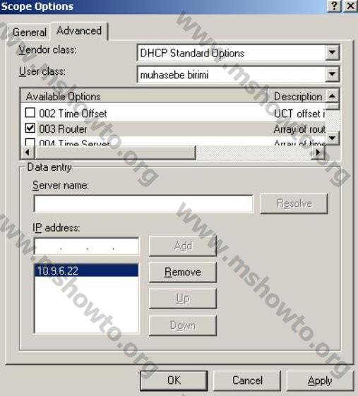 Sistemimizde 100 ip adresi dağıtan bir scope yapımız var ve bu scope yapımızın 15 tanesi muhasebe birimine ait pc ‘ler olsun. Bu muhasebe birimine ait pc’lere farklı bir router adresi tanımlamak istiyorum. İşte bu uygulamayı rahatlıkla Dhcp ClassID ugulaması ile yapabiliriz. Bu özelliği aktif hale getirmek için ise aşağıdaki adımları gerçekleştiriyoruz;