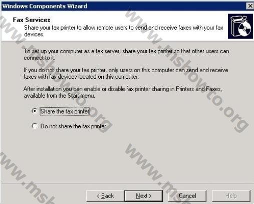 2.) Gelen ekranda “Share the fax printer” seçeneğini seçerek bir sonraki ekrana geçiyoruz,