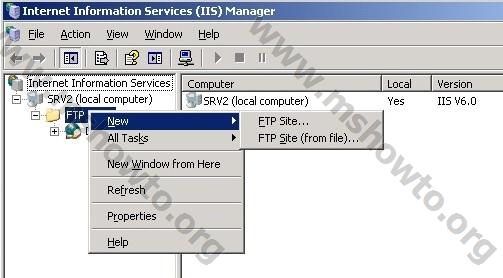 4.) FTP Server’ımızda yeni bir Ftp Sitesi oluşturmak için FTP Sites üzerinde sağ buton New > Ftp Site diyoruz,