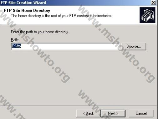 9.) Ftp Site Home Directory ekranında ise bu yapılandırmada hangi sürücüde hangi klasör hizmet verecek onu belirterek Next diyoruz,