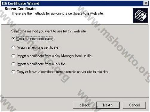 2.) Server Certificate ekranında 5 farklı seçenek karşımıza geliyor. Bu seçeneklerden birinci