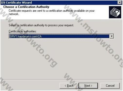 Bu seçenek ise organizasyon içerisinde hizmet veren bir sertifika sunucusu varsa doğrudan bu sertifika sunucusundan sertifika talebinde bulunulur.