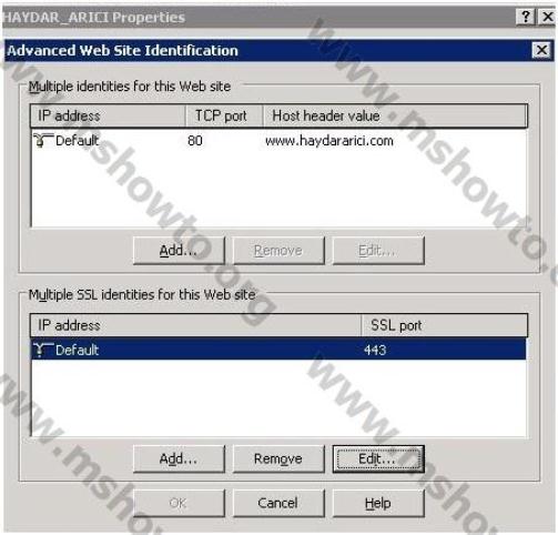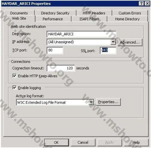 14.) Buraya kadar yapmış olduğumuz işlemler ile ilgili bilgileri teyit etmek için ilgili web sitenin özelliklerine bakmakta yarar var. Web sitemizin özelliklerinde bulunan Web Site sekmesinde yapılan değişiklik hemen dikkatimizi çekecektir.