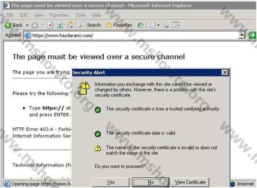 16.) Web sitemize SSL ile bağlantı kurulabilmesi için gerekli ayarların tamamını yaptık, şimdi ise web sayfamızın sağlıklı bir şekilde görüntülenip görüntülenmediğini test edelim. IE açarak adres satırına (URL) https://www.haydararici.com yazıp sayfanın görüntülenmesi için enter diyoruz. Bu işlem ile sertifika uyarısı gelecektir , bu ekranda Yes diyerek işlemimize devam ediyoruz.