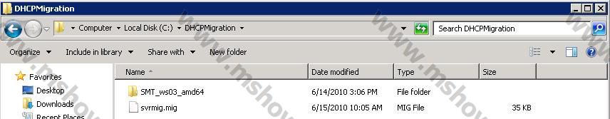 2008 R2 sunucumuza baktığımız zaman C:\DHCPMigration klasörümüzün altına svrmig.mig Migration dosyasının oluşturulduğunu görebiliriz.