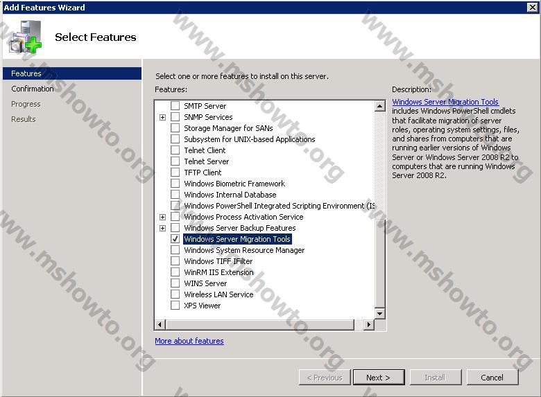 Add Feature adımını seçtikten sonra Windows Server Migration Tools’u ekliyoruz.