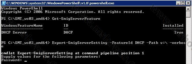 Export-SmigServerSetting –FeatureId DHCP –Path v:\