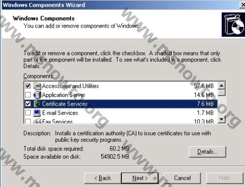 1.) Windows Server 2003 işletim sisteminde bileşen eklemek için Denetim Masasında yer alan Program Ekle /Kaldır ‘ı çalıştırıyoruz. Gelen ekranda Windows Compenents ‘leri ekleme ve kaldırma olanağına sahibiz. Bu ekrandayken önce Certificate Services kurulumu yapmamız için bu seçeneği işaretleyerek Next ile kurulum işlemini başlatıyoruz.