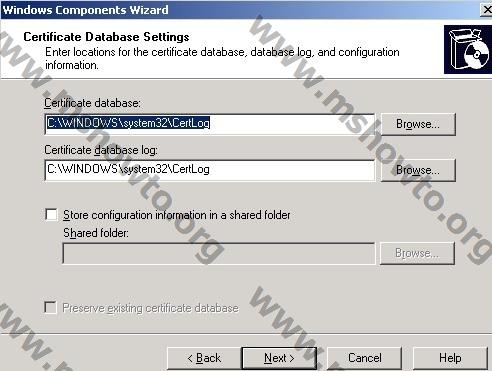4.) Gelen ekranda ise CA için oluşturulacak Database ve Log dosyalarının nereye oluşturulacağı bilgileri gelecektir, varsayılan bilgileri değiştirmeden Next diyoruz ve kurulum işlemini tamamlıyoruz.