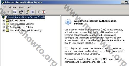 6.) Bileşen kurumlarını tamamladığımıza göre artık Internet Authentication Service yönetim konsolunu açarak işlem yapabiliriz. Bu yönetim konsolu 4 farklı bölümden oluşuyor.