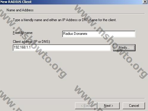 9.) Gelen ekranda 802.1x hizmetini verecek olan donanım bilgilerini belirtiyoruz ve Next diyoruz,