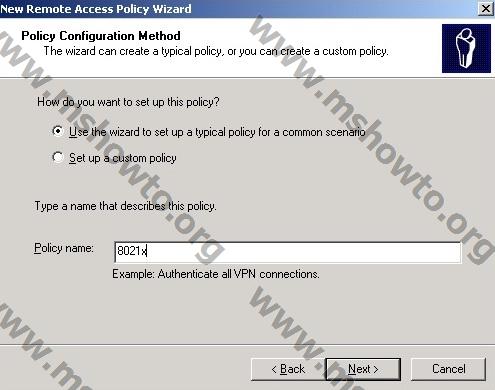 12.) Policy Configration Method ekranında birinci seçenek olan ve “Use the wizard …” ile başlayan seçeneği seçerek Policy name kısmına dilediğiniz bir ismi veriyoruz, Next diyoruz.