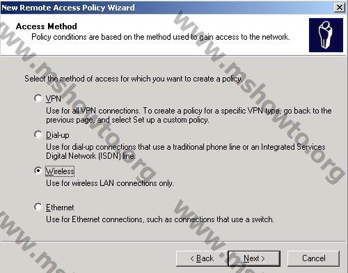 13.) Access Method ekranında “ Wireless” seçeneğini seçerek Next diyoruz,
