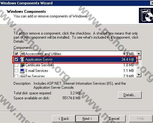 2. ) Bu işlem ile  Windows Components  ekranı karşımıza geliyor. Applicatin Server seçeneğini aktif hale getirerek Details butonuna basıyoruz,