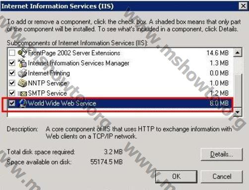 4.) Internet Information Service altında Word Wide Web Services seçeneğini aktif hale getirerek Details butonuna basıyoruz,