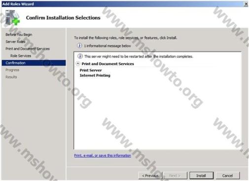 4.) Select Role Services ekranında Internet Printing özelliğini aktif hale getirerek Next diyoruz,
