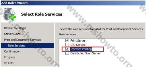 4.) Select Role Services ekranında Internet Printing özelliğini aktif hale getirerek Next diyoruz,