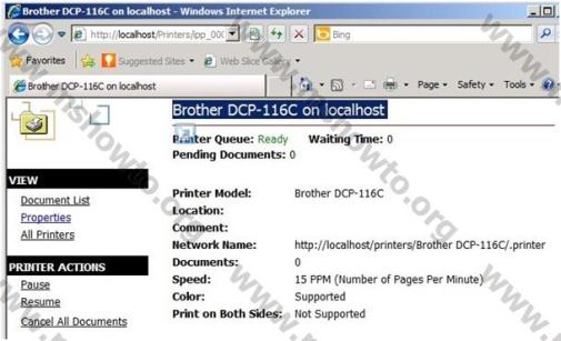 7.)Kurulum yaptığımız sunucu üzerinden erişim sağlama için IE adres satırına http://localhost/Printers yazarak sayfanın görüntülenmesini sağlıyoruz. Bu işlem ile ilgili sunucu üzerinde kaç tane yazıcı ve paylaşıma açılmış ise o listesi IE ara yüzden görüyoruz.