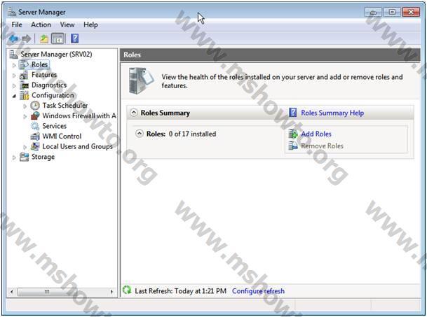Öncelikle Server Manager’ı açın ve buradan Roles nodunu seçiniz. Buradan Add Roles’e tıklayın (şekil 1)