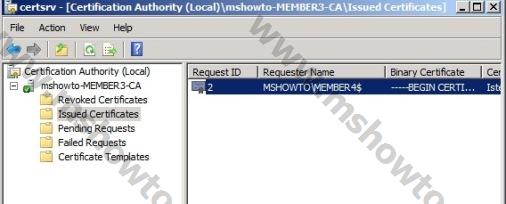 b.) Sertifika Yöneticisinde Issued Certificates kabında otomatik olarak sertifika isteğinin yanıtlandığını gösteren kayıt bilgisinin kontrol edilmesi.