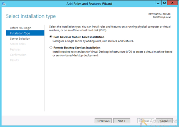 Role-based or feature-based installation seçeneğini tıklayarak Next diyoruz.